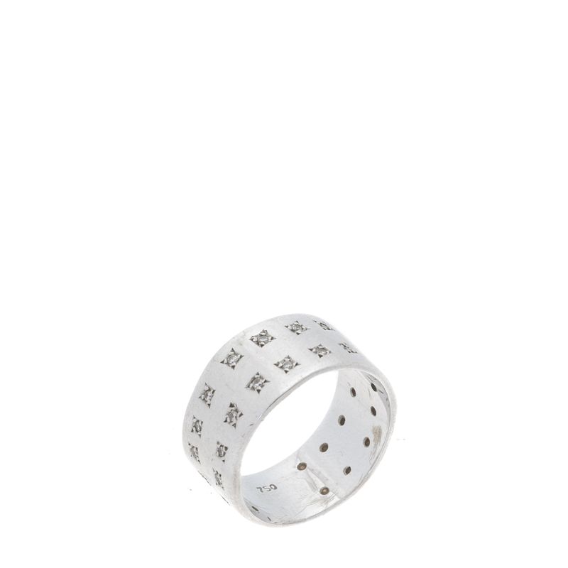 Aliança da marca H.Stern, tamanho aro 15. Confeccionado em ouro branco com brilhantes. Encontra-se em ótimo estado de conservação.