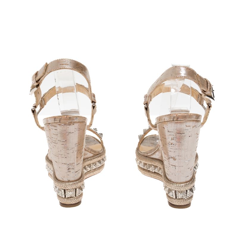 Anabela Christian Louboutin Couro Dourado e Spikes