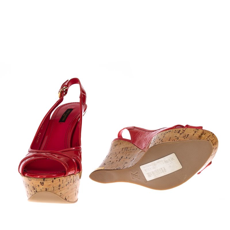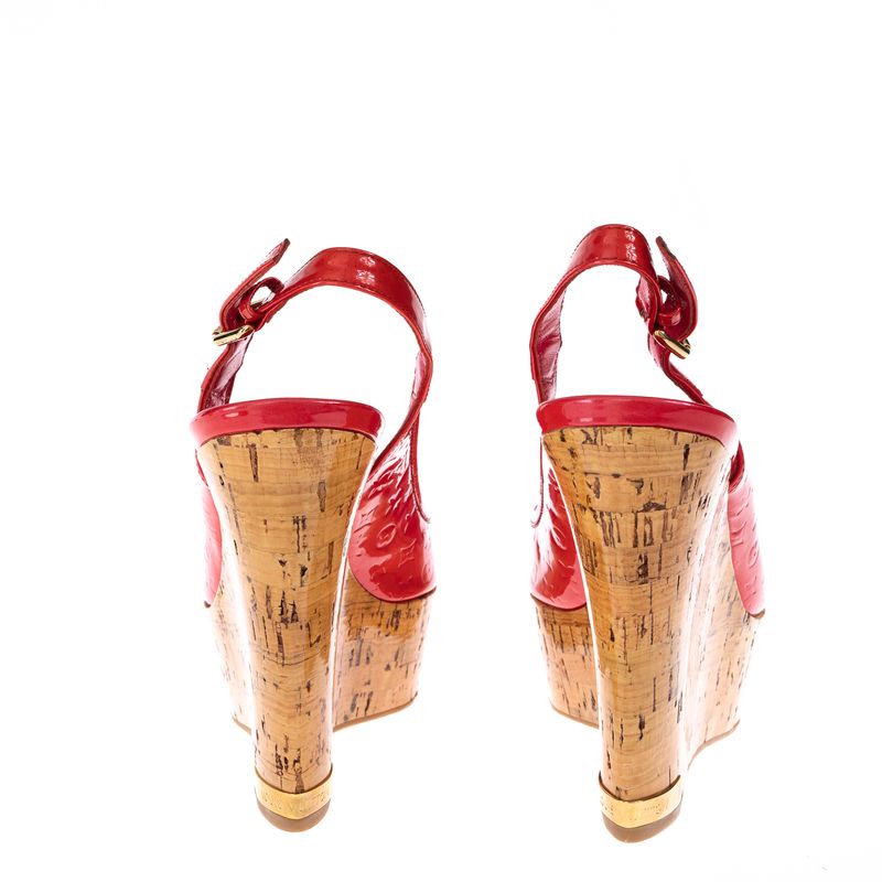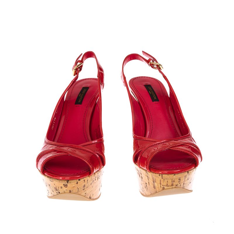 FemininoSapatosPeep ToeAnabela Louis Vuitton Monograma Verniz Rosa
