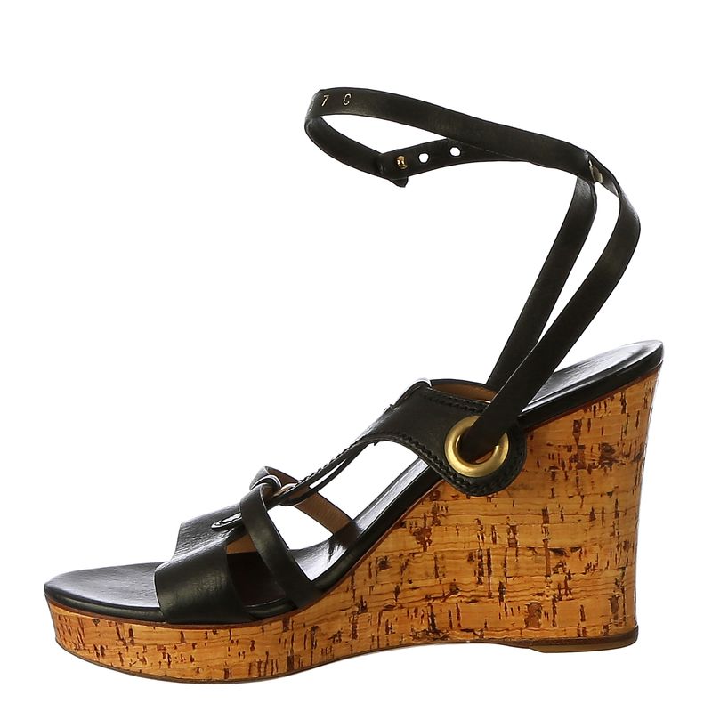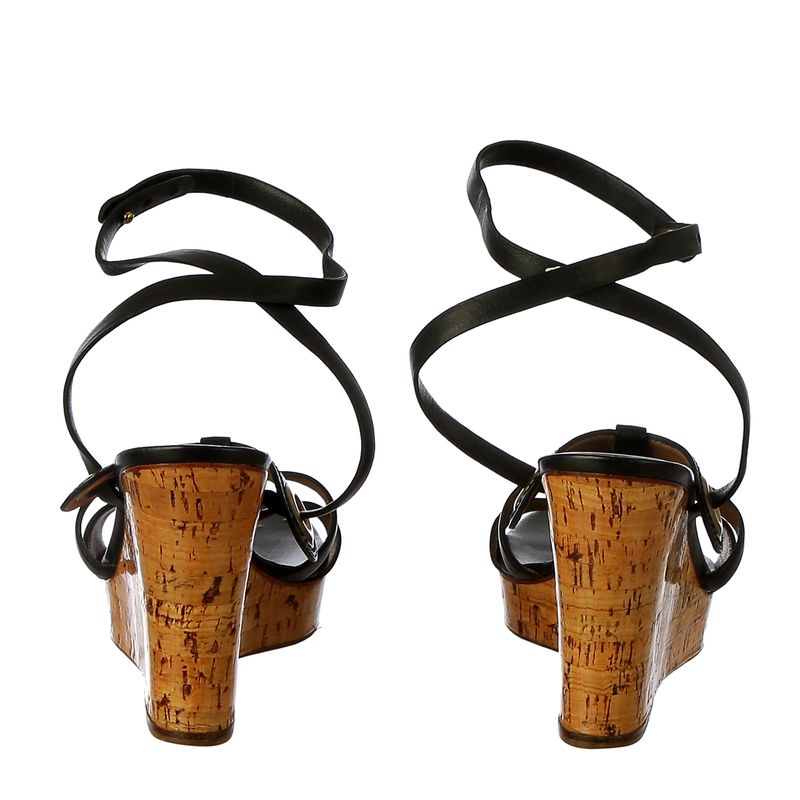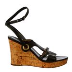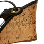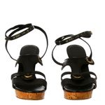 Anabela da marca Salvatore Ferragamo. Confeccionada em couro na cor preta. Possui salto em cortiça envernizada e fecho por tira cruzada no tornozelo com dispositivo de encaixe. A peça se encontra em ótimo estado, com levíssimas marcas de uso.