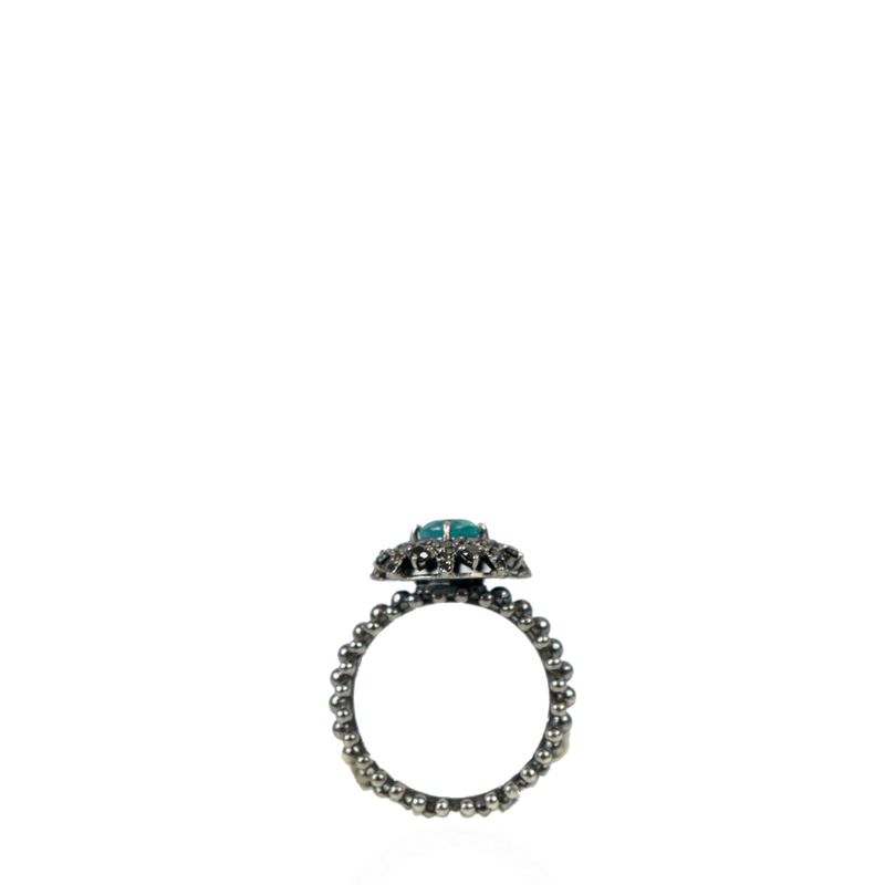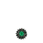 Anel Bachiana da marca Carla Amorim, tamanho 14, confeccionado em ouro negro, brilhante negro e esmeralda. Encontra-se em perfeito estado de conservação.