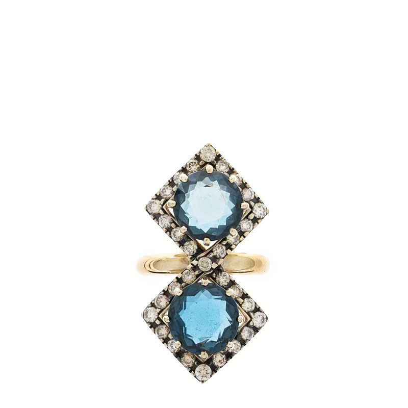 Anel H Stern Jogo de Cartas Topazio Azul e Diamantes