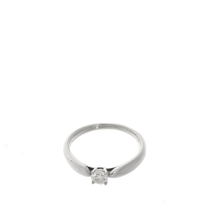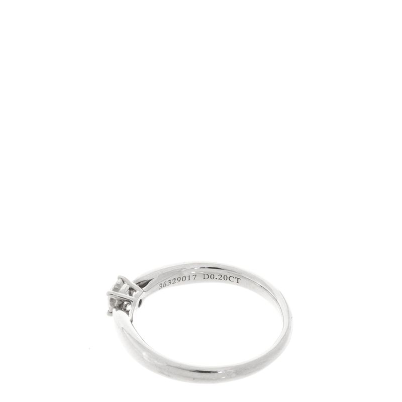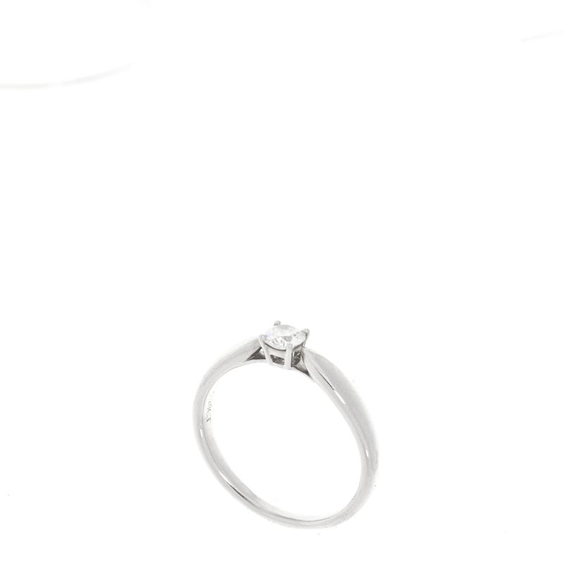 Anel Solitário Tiffany & Co. Tamanho aro 13. Confeccionado em platina, com diamante. Acompanha certificado. A peça se encontra em excelente estado, muito bem conservada.