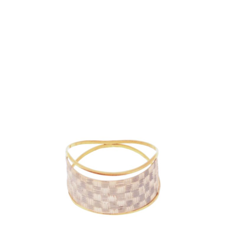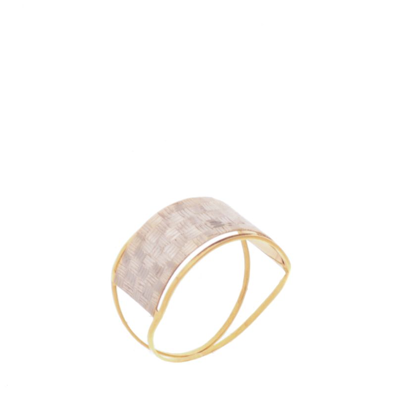 Anel Vintage Ouro Amarelo e Branco Texturizado