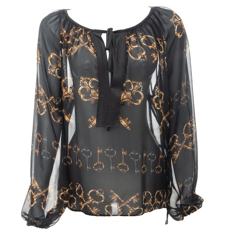 FemininoRoupasCamisasBata Estampa Chaves Preta