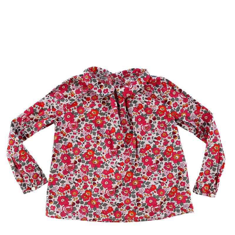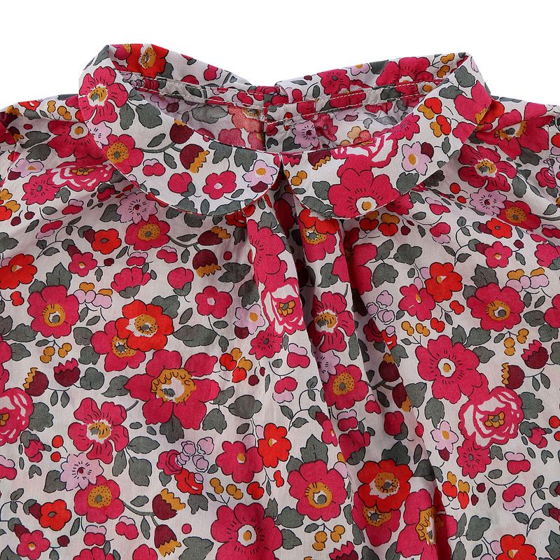 Blusa Infantil da marca Jacadi Paris. Confeccionado em tecido com estampa floral nas cores vermelho e rosa. O vestido comprimento curto, mangas longas e fecho por botões atrás. A peça se encontra em excelente estado, muito bem conservada.