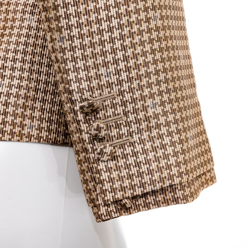 Blazer da marca Giorgio Armani. Confeccionado em tecido acetinado na estampa Pied Poule. A peça se encontra em excelente estado, muito bem conservada.