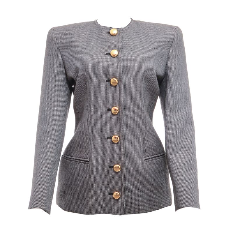 FemininoRoupasBlazerBlazer Vintage Preto e Branco Botões Dourados
