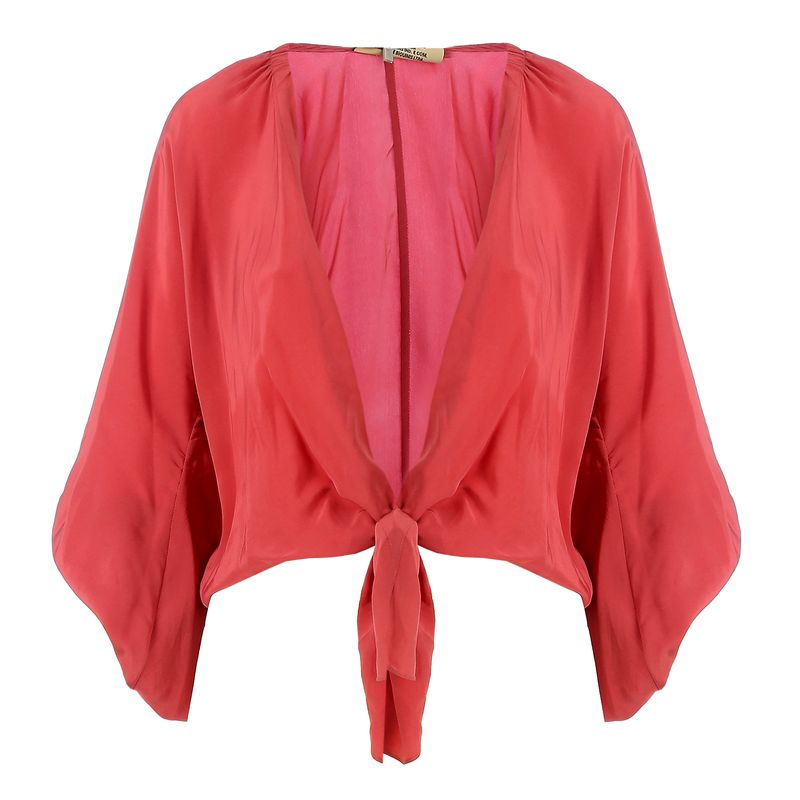 Blusa da marca Adriana Degreas. Confeccionada em seda rosa, possui amarração na parte da frente. A peça se encontra em excelente estado, muito bem conservada.