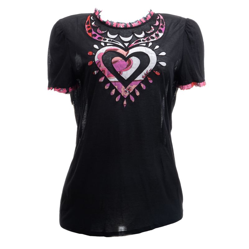 Blusa Emilio Pucci Coração Preta e Rosa