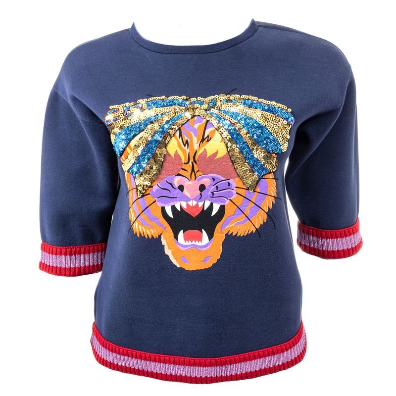 InfantilRoupas InfantisBlusasBlusa Gucci Infantil Estampa Tigre Azul Marinha