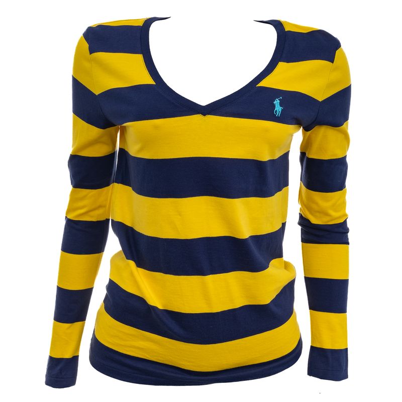 Blusa Ralph Lauren Manga Longa Listras Amarelo e Marinho