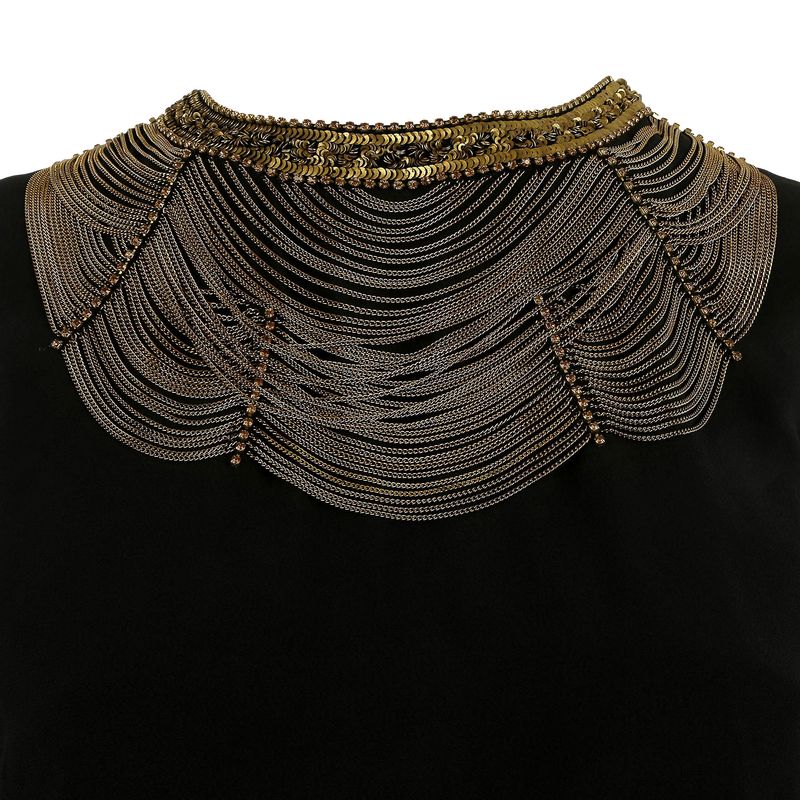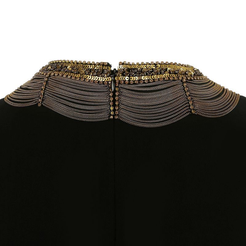 Blusa da marca Ralph Lauren. Confeccionada em viscose na cor preta com detalhe de aplicação metalizada dourada na parte da gola. Possui fecho por meio de zíper invisível. A peça se encontra em estado satisfatório, com leves marcas de uso aparentes.