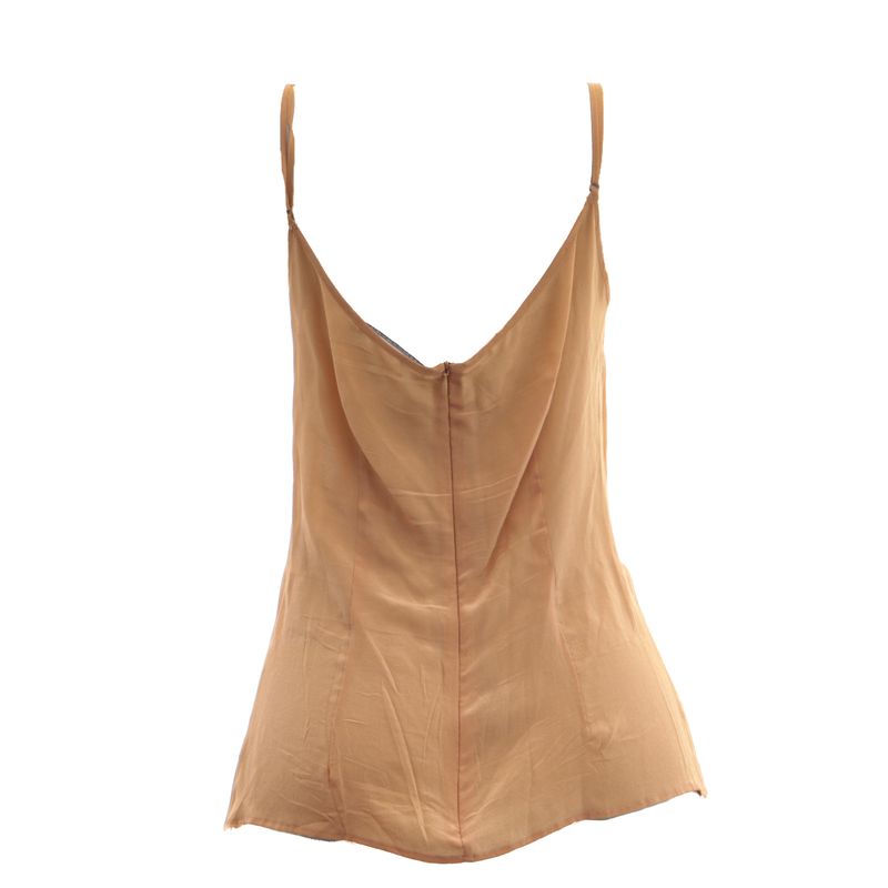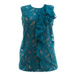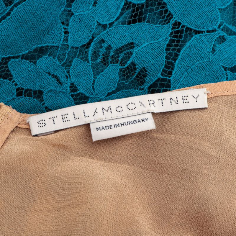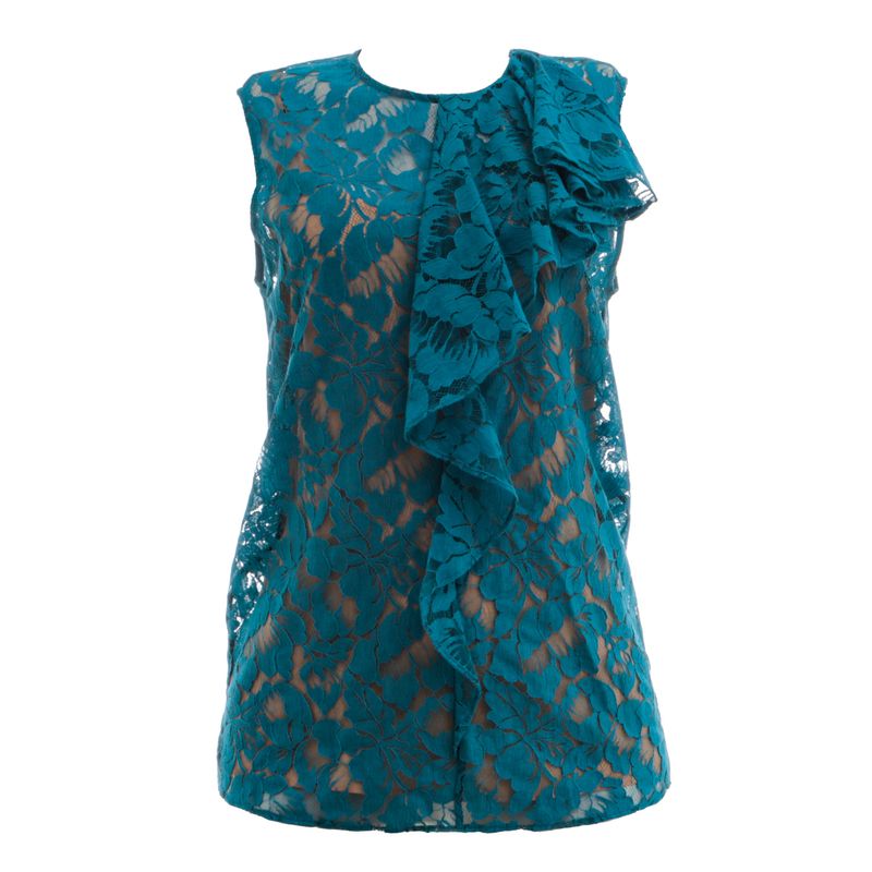 Blusa da marca Stella McCartney. Confeccionada em renda de algodão com poliamida na cor azul e forro de seda na cor bege. Modelo sem mangas, possui detalhe de babado na frente e fecho de zíper nas costas. A peça se encontra em excelente estado, muito bem conservada.