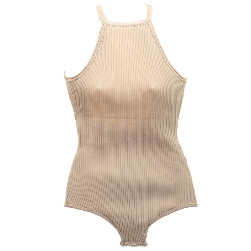 FemininoRoupasBodyBody Cris Barros Fecho Costas Malha Canelada Bege