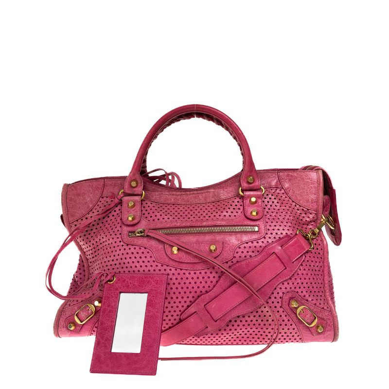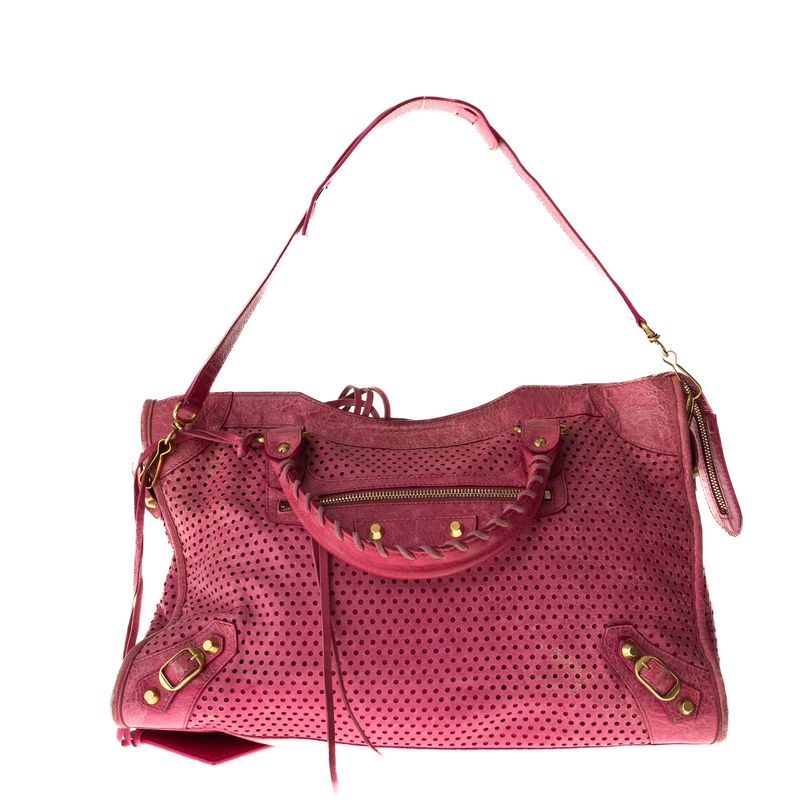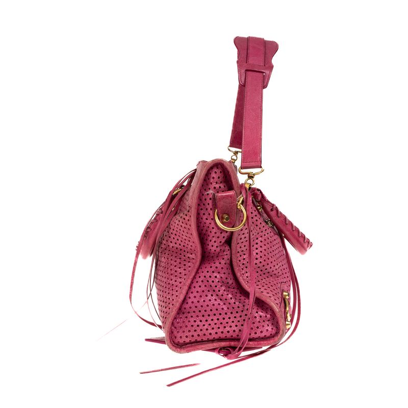 FemininoBolsasCom AlçasBolsa de OmbroBolsa Balenciaga Motocross Perfurada Rosa