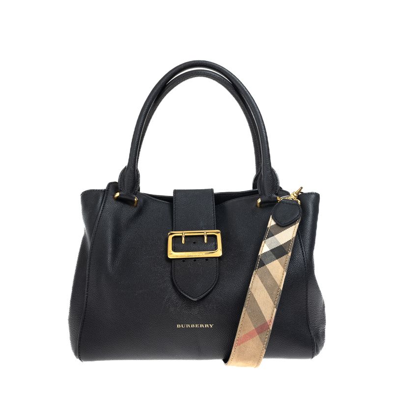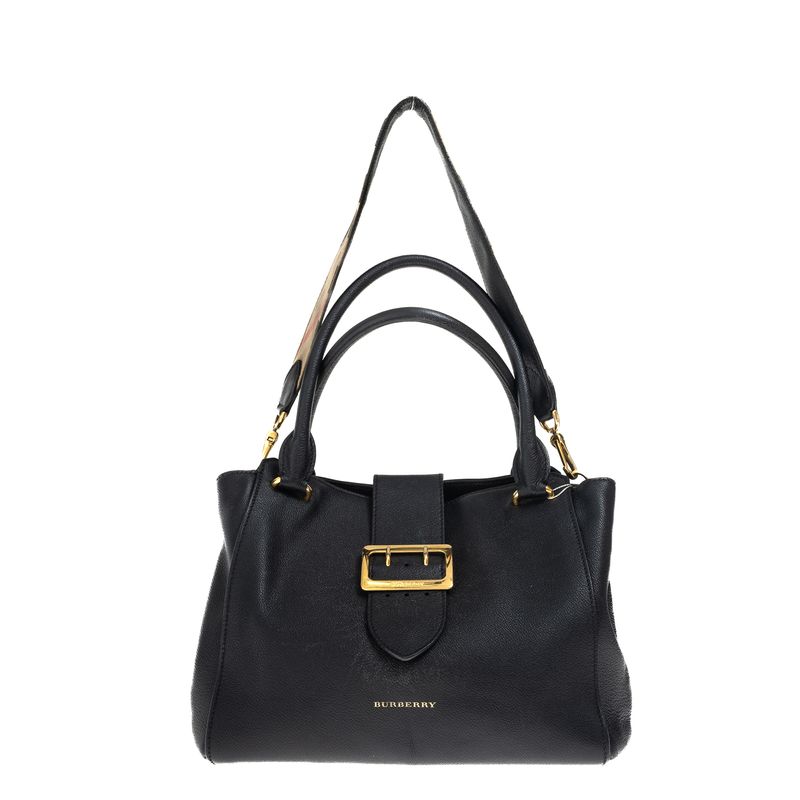Bolsa Burberry Buckle Tote Couro Preta