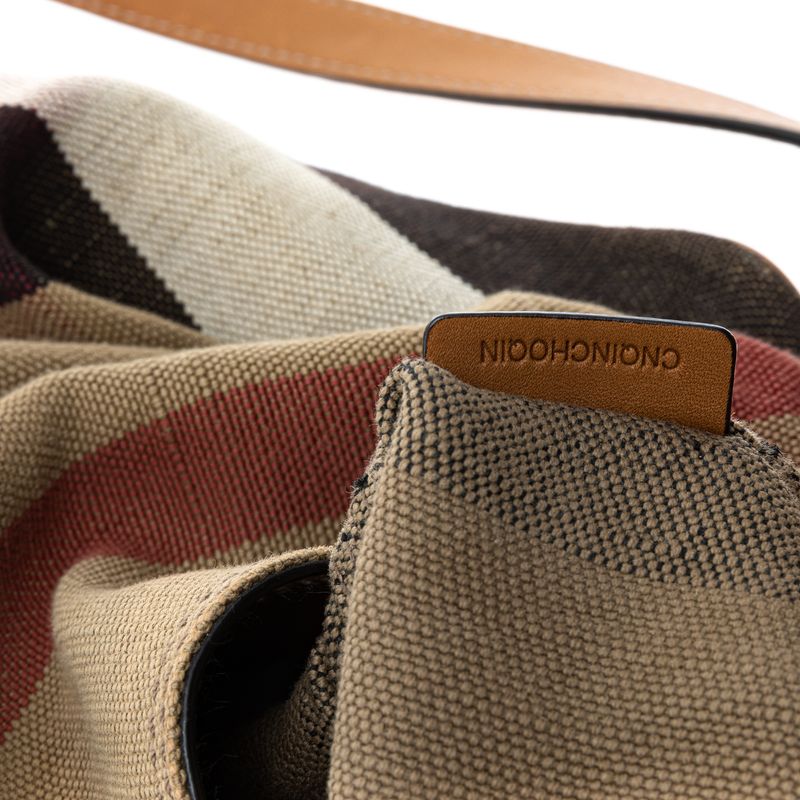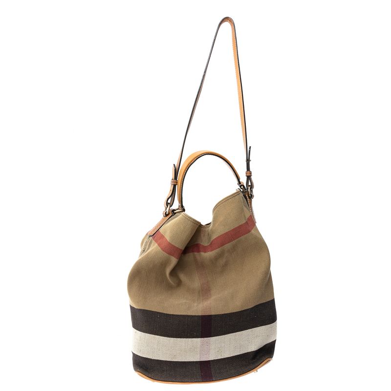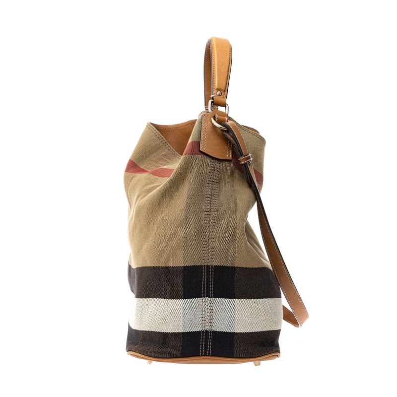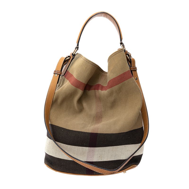 Bolsa Burberry Canvas House Check e Couro Caramelo