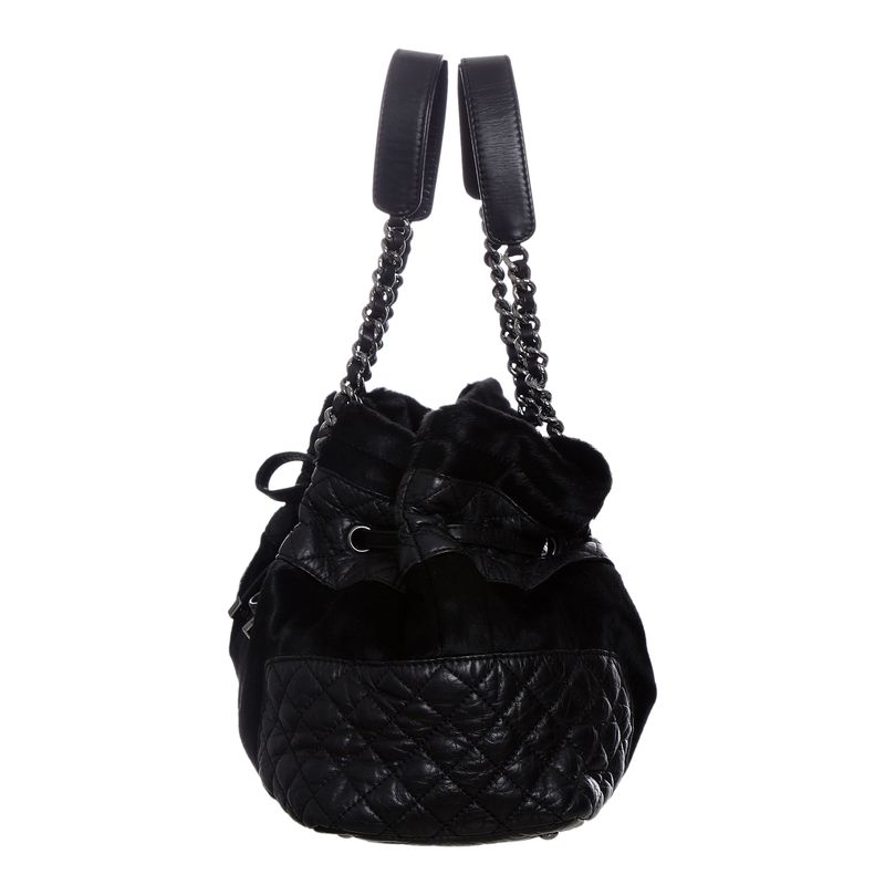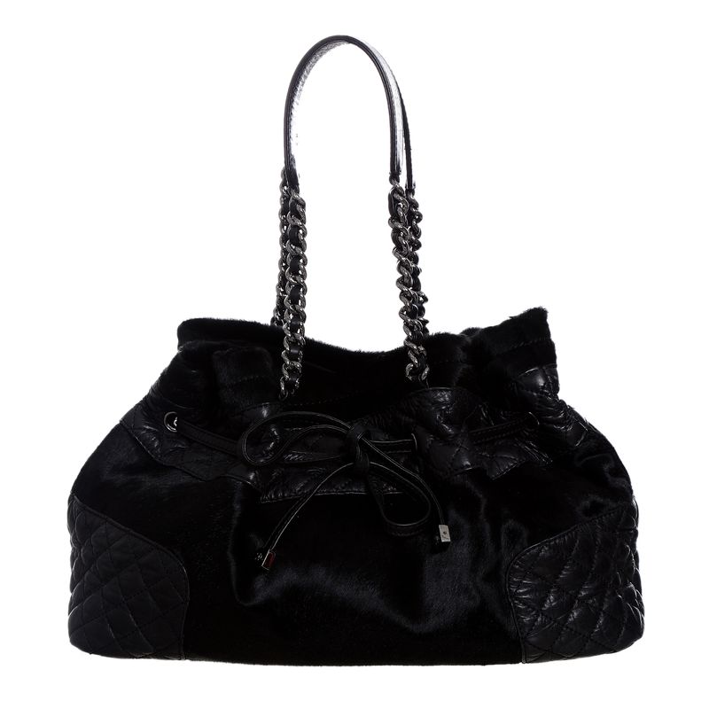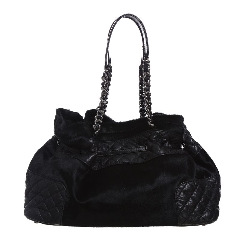 FemininoBolsasCom AlçasBolsa de OmbroBolsa Chanel Pêlo e Couro Preta