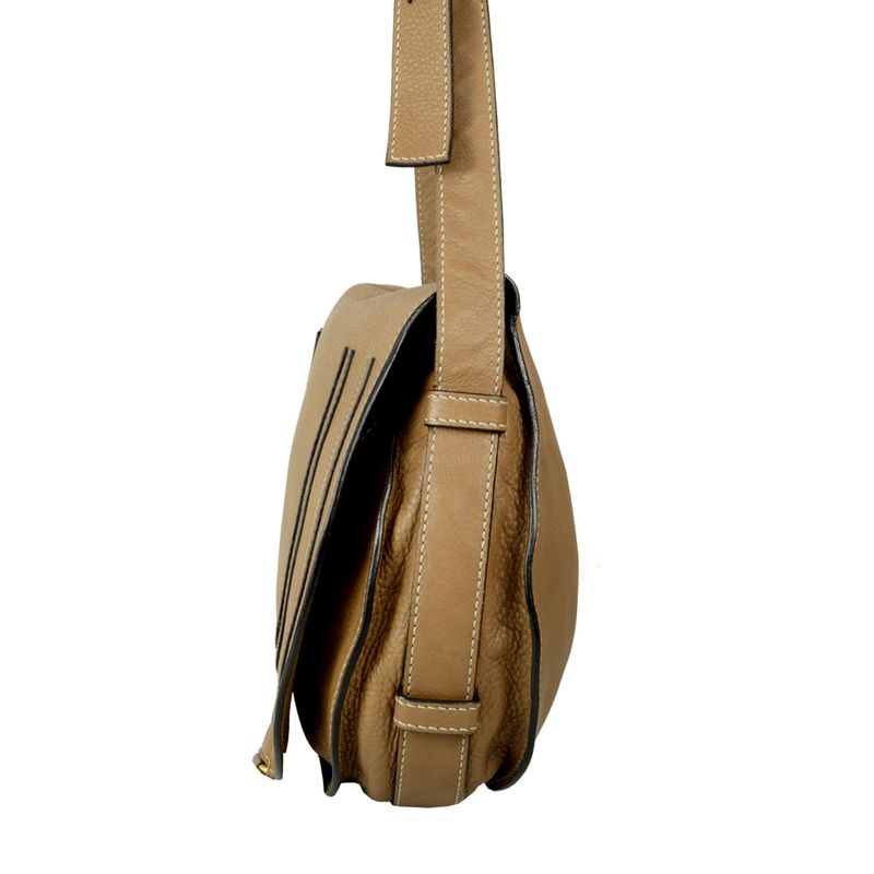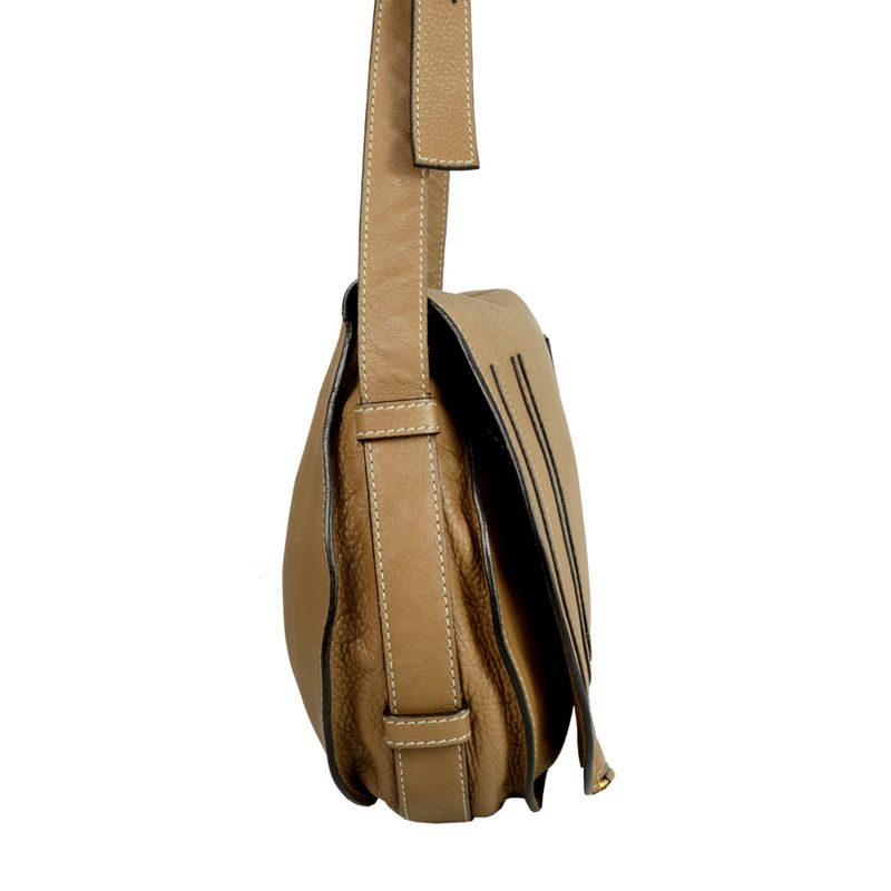Bolsa da marca Chloé, tamanho 30 cm C x 26 cm A, confecionado em couro bege. A bolsa com uma alça de transpassar regulável, dois compartimentos, um bolso interno e fecho por meio de fivela. Encontra-se em excelente estado de conservação, sem marcas de uso aparente.