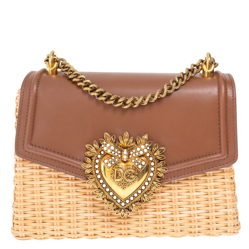 Bolsa Dolce & Gabbana Devotion Vime e Couro Marrom