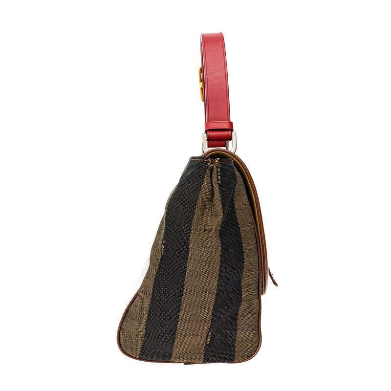 Bolsa Fendi Jacquard Pequin e Couro Marrom