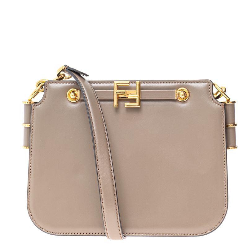 FemininoBolsasTransversalBolsa Fendi Logo Couro Cinza