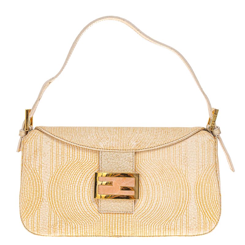 Bolsa Fendi Vintage Baguete Couro Creme Pedra Mica Rosa