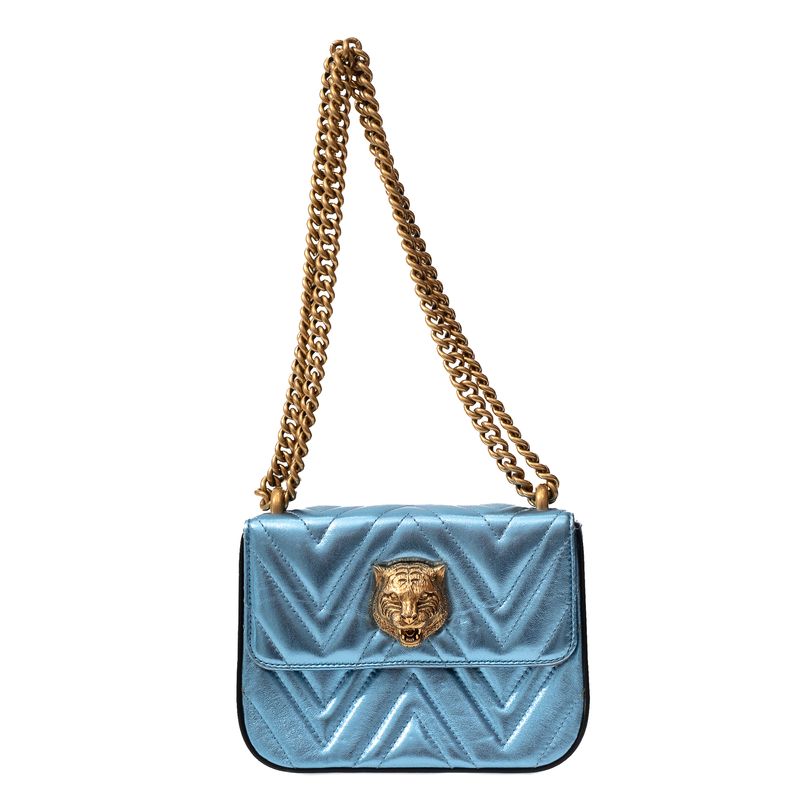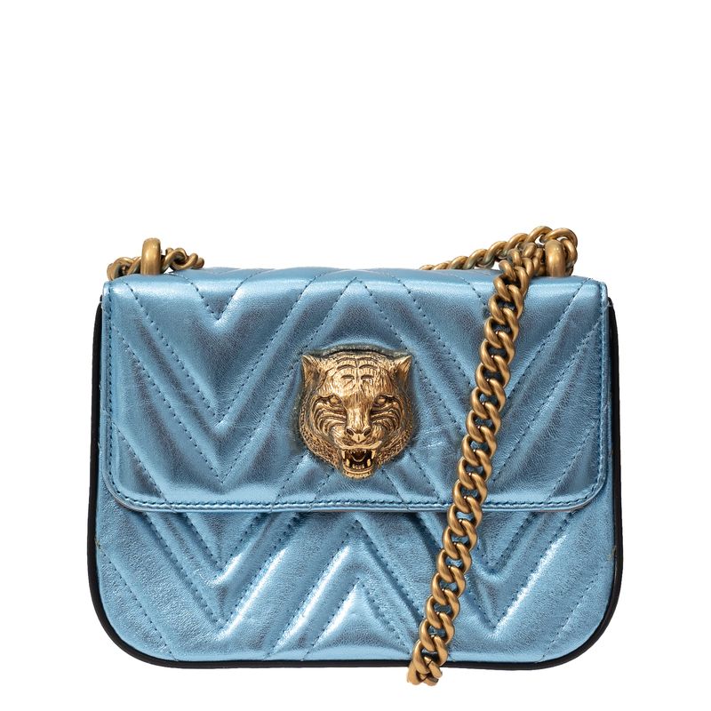 Bolsa Gucci Broadway Tigre Metalizada Azul