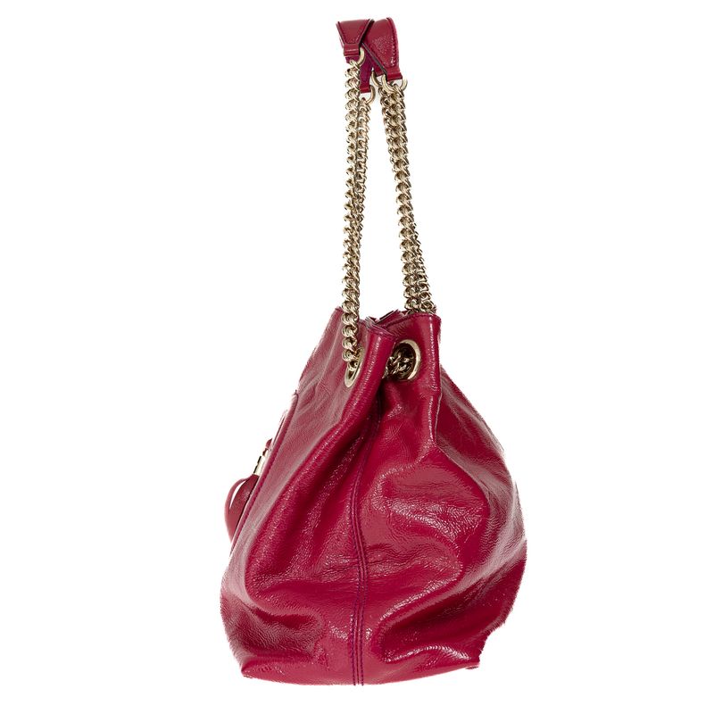 Bolsa Gucci Soho Chain Tote Verniz Rosa
