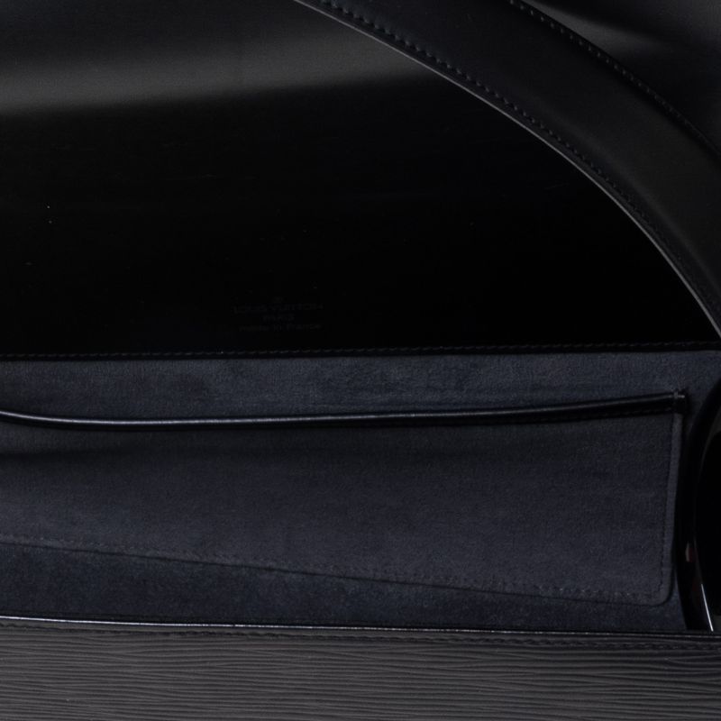 Bolsa da marca Louis Vuitton, tamanho 31 cm largura x 15 cm altura. Confeccionado em couro epi, detalhes em acrílico preto. A bolsa contém uma alça de ombro, um bolso interno e fecho por meio botão magnético. A peça se encontra em estado satisfatório, com leves marcas de uso.