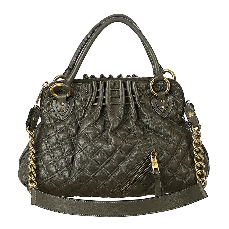 Bolsa Marc Jacobs Couro Matelassê Cinza e Metal Dourado