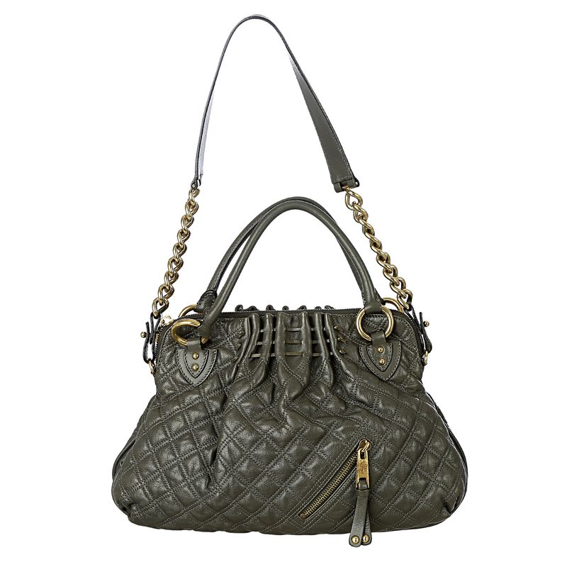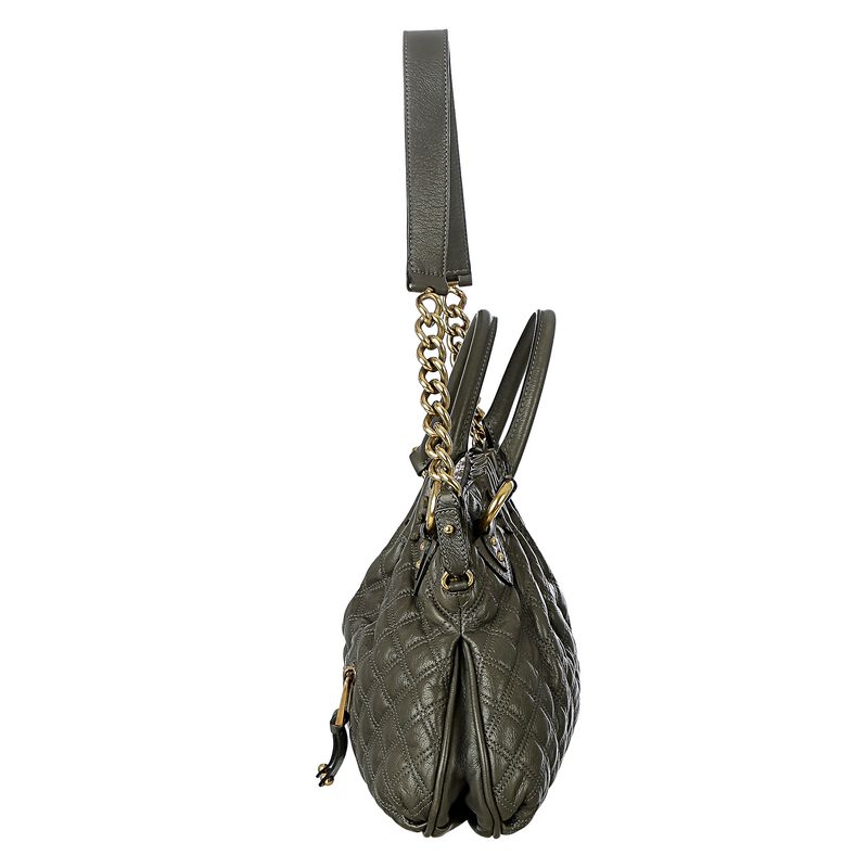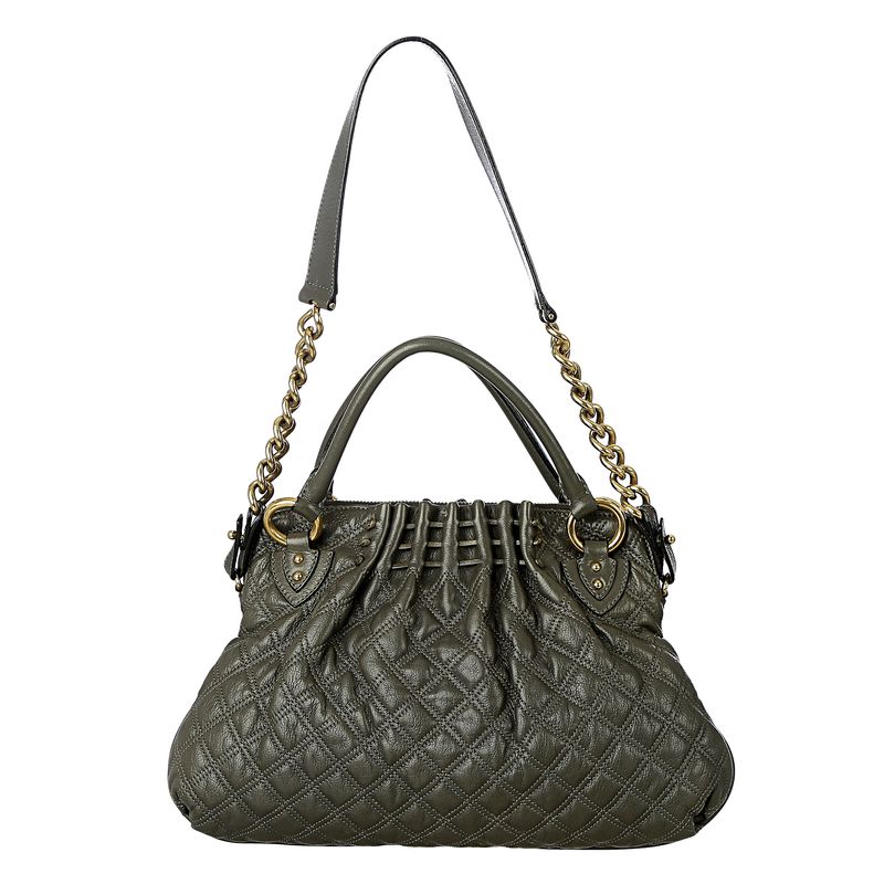 FemininoBolsas FeminasCom AlçasBolsa de OmbroBolsa Marc Jacobs Couro Matelassê Cinza e Metal Dourado