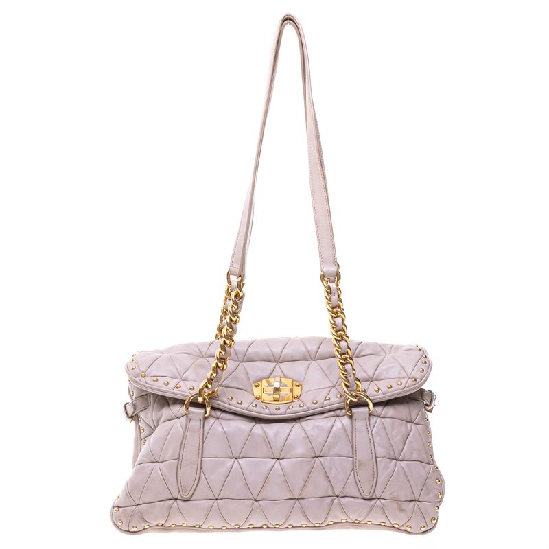 Bolsa Miu Miu Couro Metalasse Cinza Claro