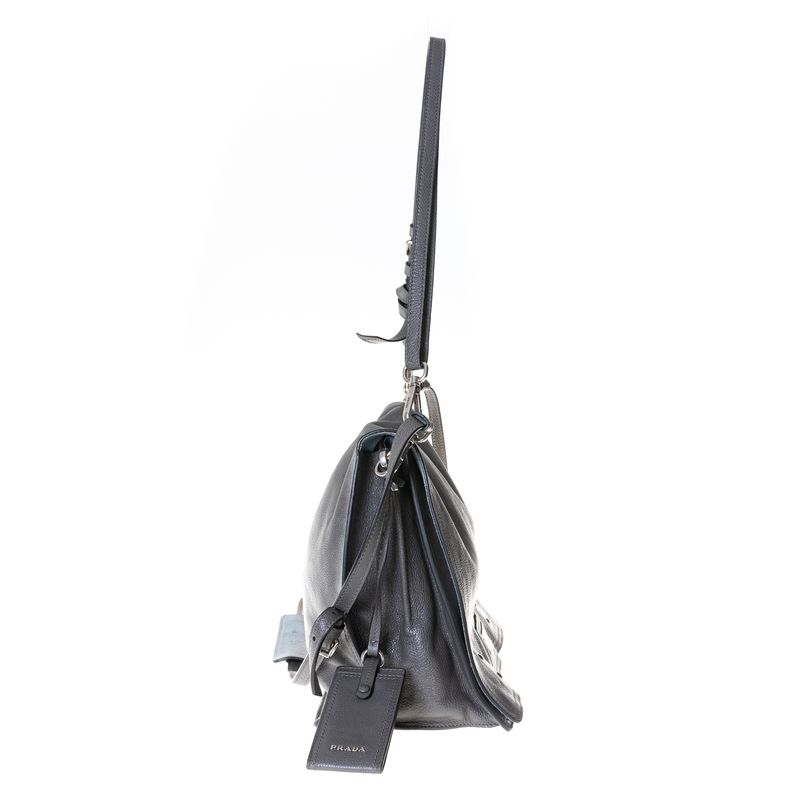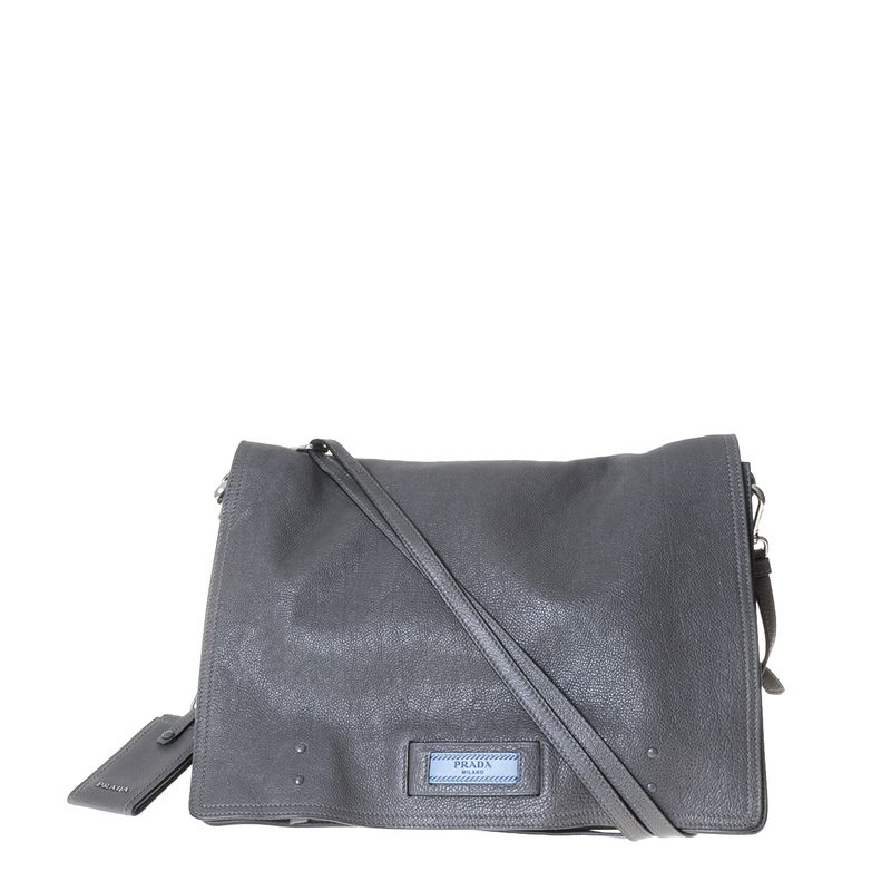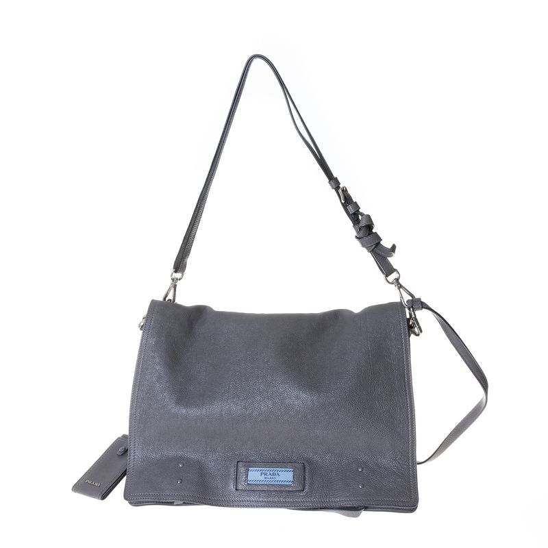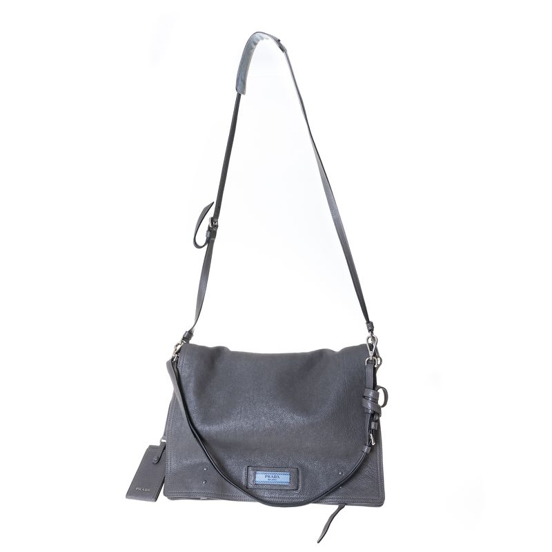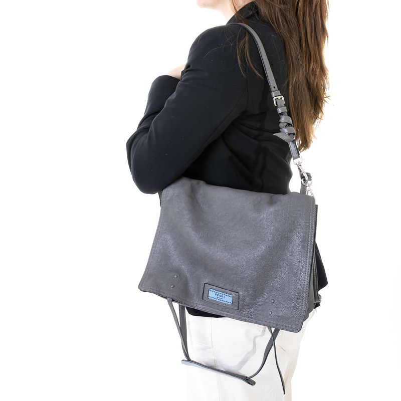 Bolsa Prada Etiquette Média Couro Cinza