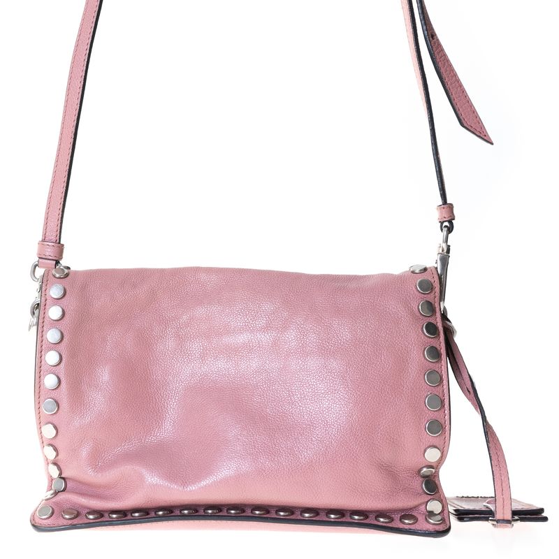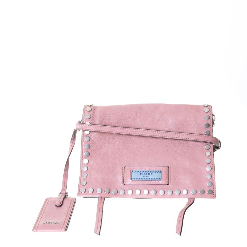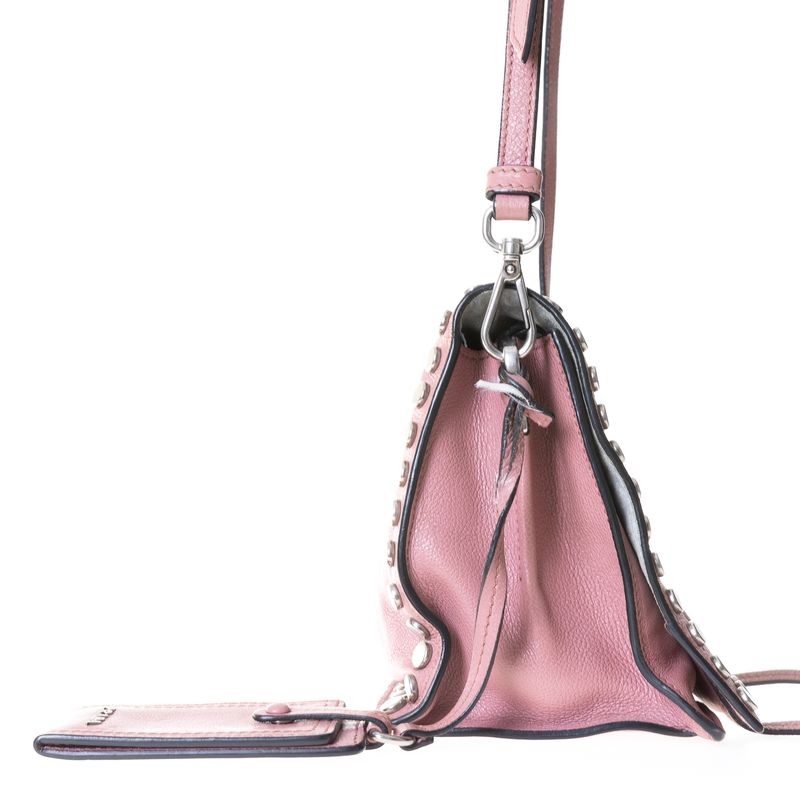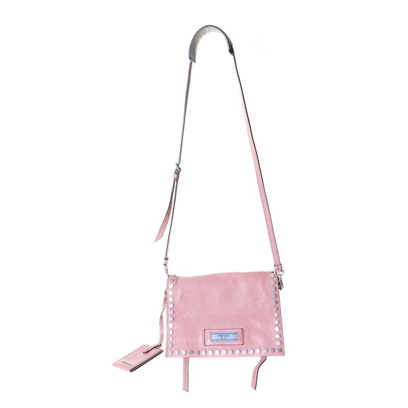 Bolsa Prada Etiquette Pequena Couro Rosa com Aplicações