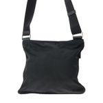 Bolsa da marca Prada Flat Vela Messenger. Confeccionado em nylon preto, ferragens chumbo, logotipo com inscrição em metal no triângulo. A bolsa possui alça longa ajustável, bolso com zíper na parte externa e compartimento único com fecho por zíper. A peça se encontra em ótimo estado, com leves marcas de uso.