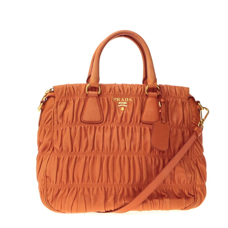 Bolsa Prada Nappa Gaufre Couro Laranja