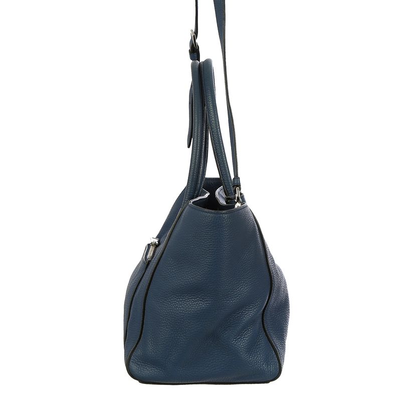Bolsa da marca Prada. Confeccionada em couro azul, possui duas alças de mão, uma alça longa removível, um bolso interno com fecho em zíper, três bolsos internos sendo dois com fecho em zíper e fecho da peça por meio de botão de pressão. Acompanha dustbag. A peça se encontra em ótimo estado, com levíssimas marcas de uso.