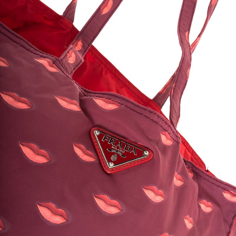 Bolsa Prada Tote Nylon Estampa Boca Vermelha
