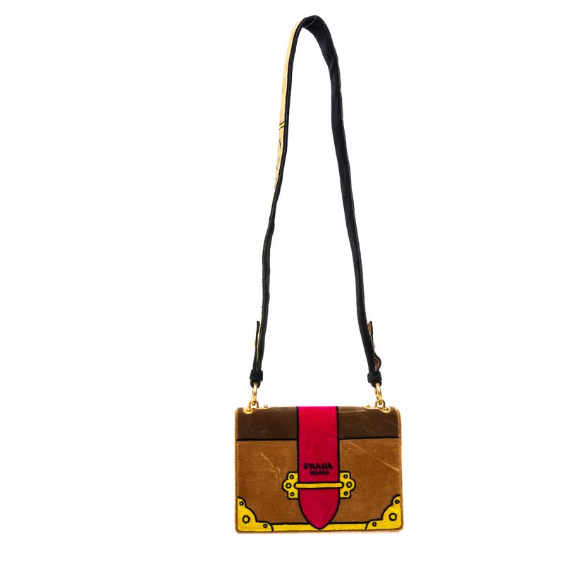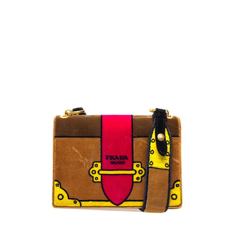 Bolsa Prada Trompe Veludo Marrom e Rosa