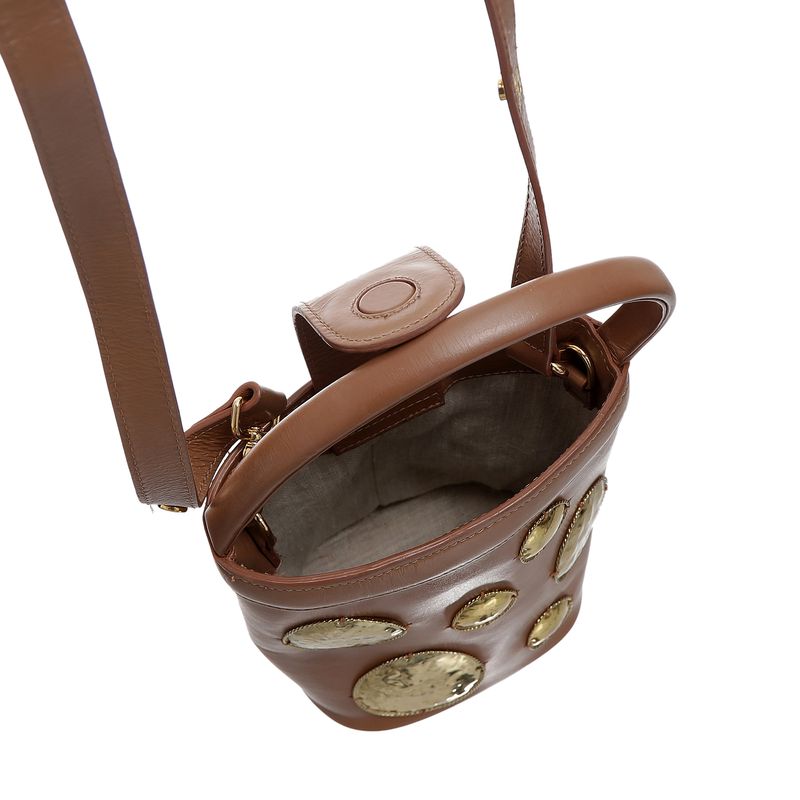 FemininoBolsasCom AlçasTransversalBolsa Waiwai Couro Caramelo e Dourado