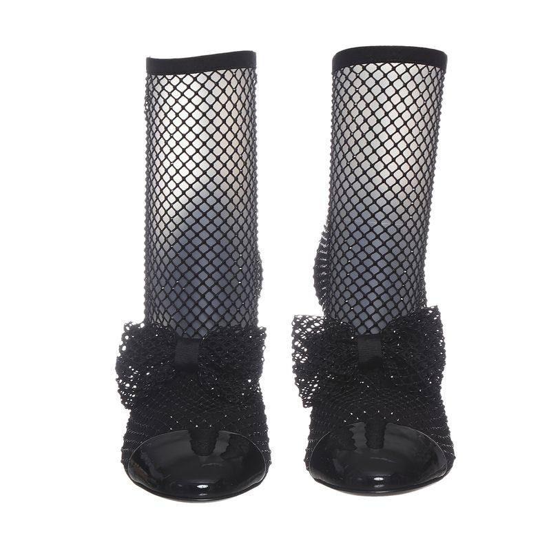 FemininoSapatosBotasBota Chanel Laço Tela Preta