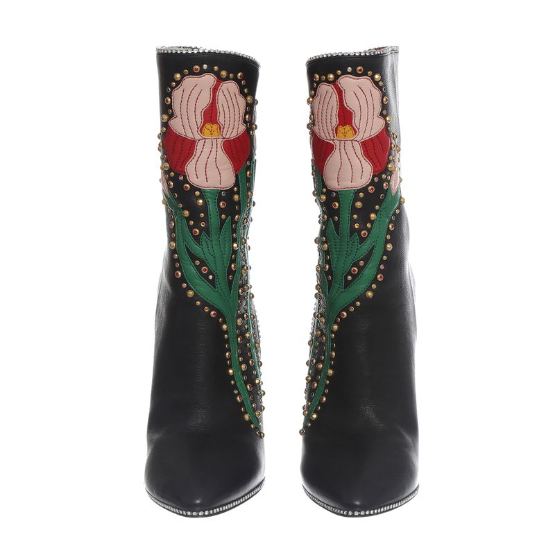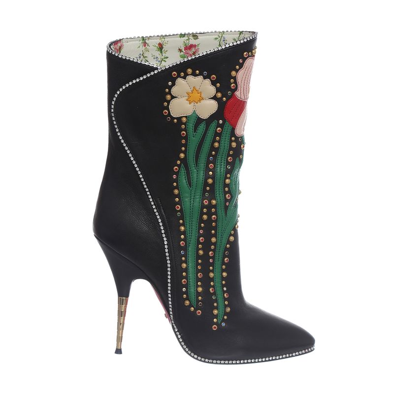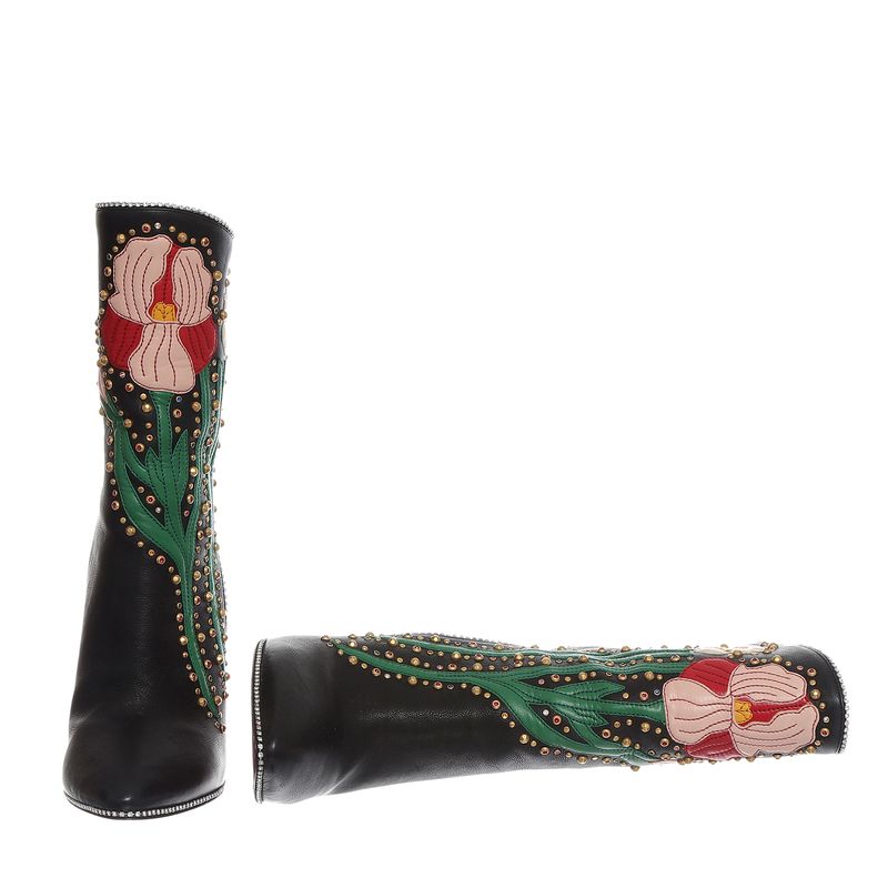 FemininoSapatosBotasBota Gucci Couro Preto Bordado