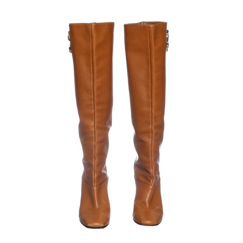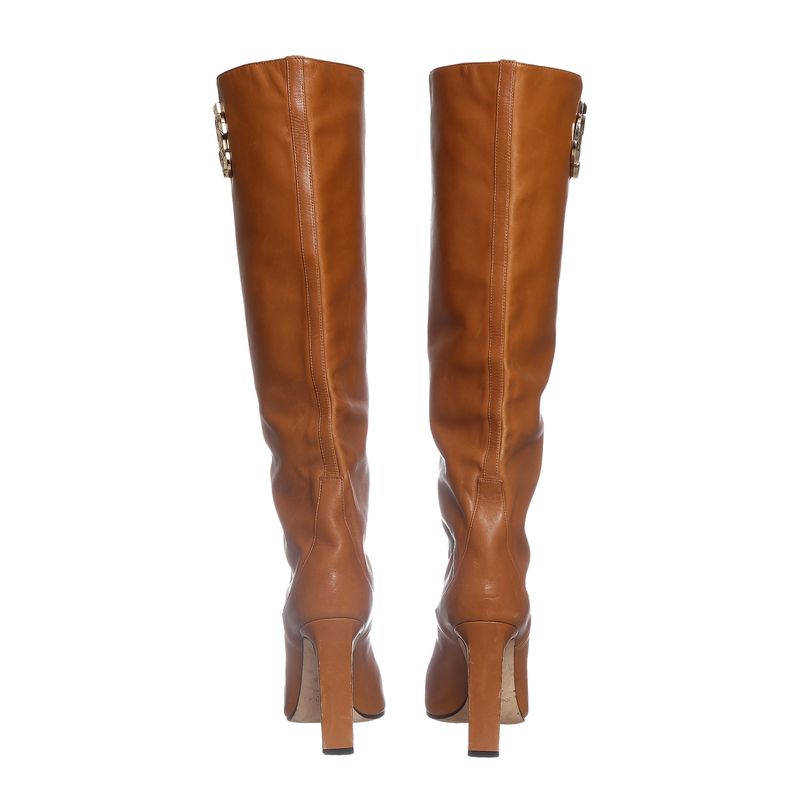 Bota Jimmy Choo Cano Alto Couro Caramelo