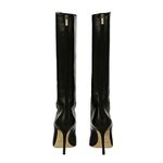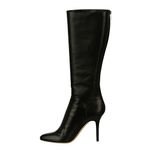 Bota da marca Jimmy Choo. Confeccionado em couro na cor preta. A bota possui cano alto, bico fino e fecho por zíper atrás. Peça nova, encontra-se em perfeito estado.