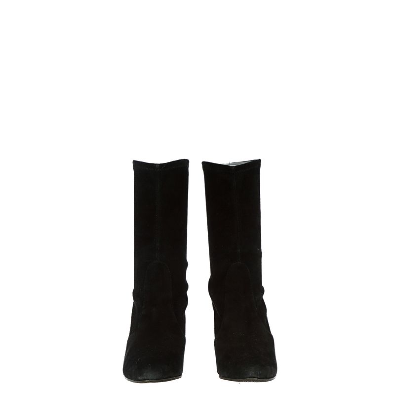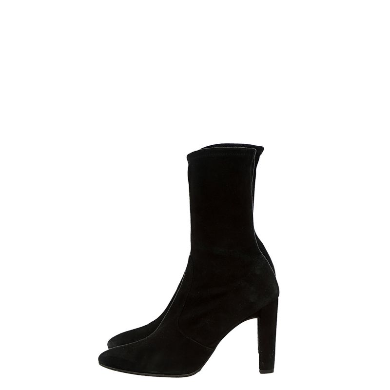 Bota de salto da marca Stuart Weitzman. Peça confeccionada em camurça preta. Possui salto de 10cm de altura. Se encontra em excelente estado, muito bem conservada.