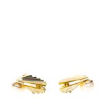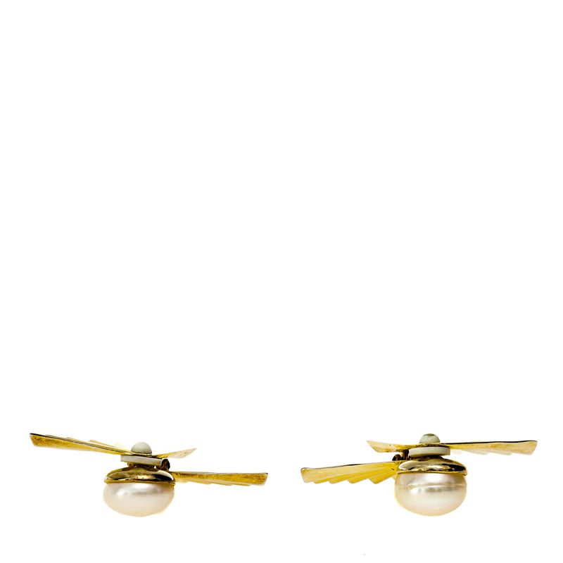 Brinco de Pressão da marca Aron & Hirsh. Confeccionado em prata com banho de ouro 18k, formato de leque meia pérola. A peça se encontra em ótimo estado, com levíssimas marcas de uso.