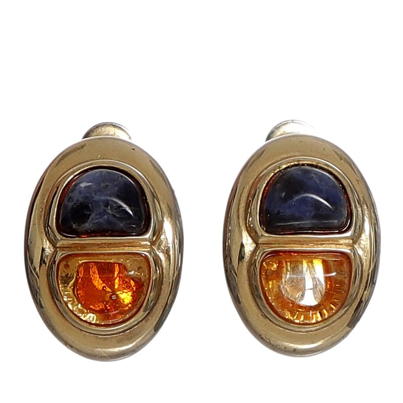 FemininoAcessórios de LuxoBijouxAnéisBrinco de Pressão Pedra Azul e Amarela Dourado