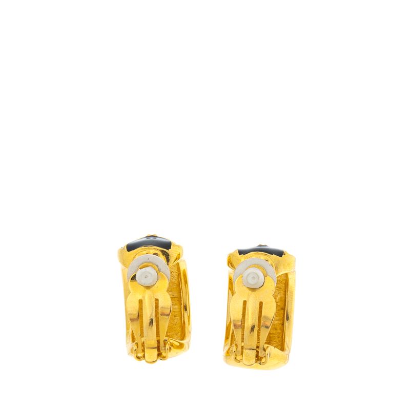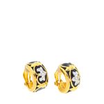 Brinco de pressão da marca Swarovski. Modelo estilo argola, confeccionada em metal na cor dourada, com esmaltação na cor preta e aplicações de cristal. A peça se encontra em excelente estado, muito bem conservada. Medida: 2,5cm de diâmetro.